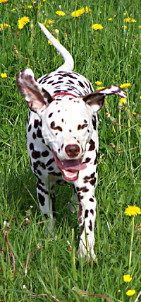 Wie sich jedoch bald herausstellte, war meine Schwester voll in Ordnung und die zwei Menschen schienen wirklich nett zu sein. Lange Rede kurzer Sinn, ich beschloss mich diesem Rudel anzuschließen und verließ somit mein Heimatland, um nach Österreich zu ziehen. In meinem neuen Zuhause fühlte ich mich dalmiwohl. Nach ordentlicher Umgestaltung der Deko ließ es sich hier recht gut leben. Mein neues Frauchen war nicht so begeistert von meinem Geschmack und räumte jedes Mal die aufgeschüttelten Polster und die zusammengesuchten Spielsachen wie Fernbedienung, Hausschuhe und Holzfiguren wieder an ihren ursprünglichen Platz.